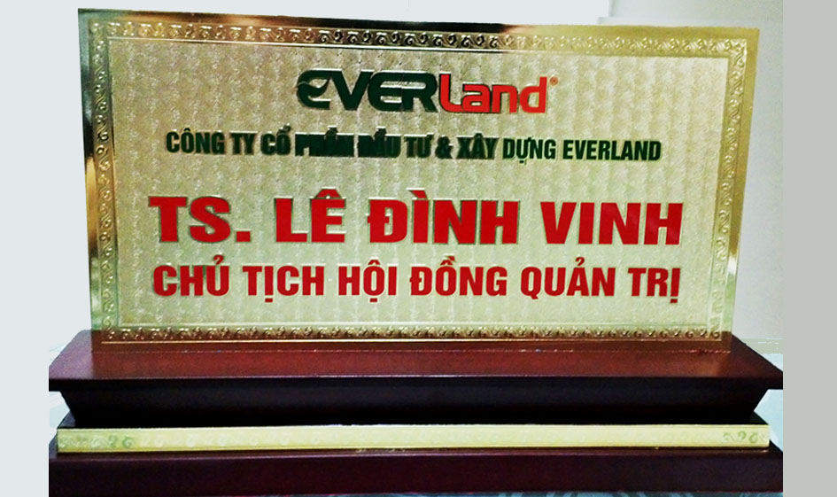 Biển tên chức danh mạ vàng được Nam Khánh sản xuất bằng vật liệu cao cấp và công nghệ kỹ thuật đặc biệt với độ tinh xảo cao. Chính bởi vậy, sản phẩm thể hiên được nhiều giá trị, làm hài lòng cho những chủ sở hữu và đem đến cả những sự ngưỡng mộ từ mọi người xung quanh. Biển tên chức danh thường được làm cho các chức danh lãnh đạo: Chủ tịch hội đồng quản trị, Tổng giám đốc, Giám đốc, Phó Giám đốc, Trưởng phỏng, … theo khối doanh nghiệp hoặc Bộ trưởng, Thứ trưởng, Trưởng phòng, Giám đốc, … theo khối hành chính.